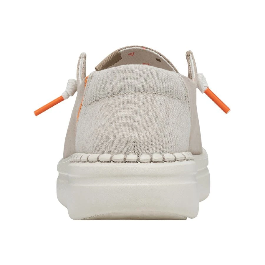 Our iconic low-top moc with a little extra height and a little extra cushion. The Wendy Rise Chambray collection is still super lightweight and comfortable. Built with a textured, breathable chambray-blend upper, an ultralight outsole and designed with our easy-on system featuring no-tie elastic laces. Finished off with hand-stitched details at the heel.Â